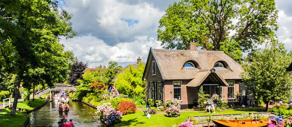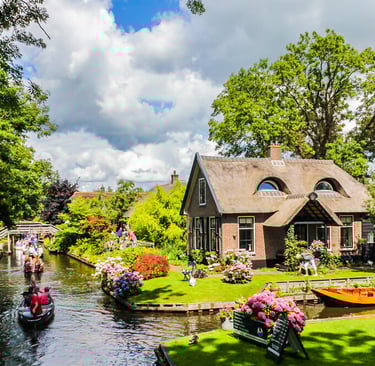 Yeşil Doğa: Giethoorn, yemyeşil bahçeleri, sazdan çatılı evleri ve sakin atmosferiyle doğayla iç içe bir yaşam sunar.